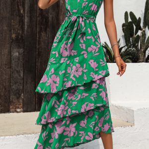- Flawlessly flowy tiers give movement to this easy maxi dress; Cut from buttery smooth Tencel lyocell blend featuring on-seam side pockets and hidden button adjustable length straps which can be worn crossed for added edge; Slip on your favorite flats and kick back in comfort and style