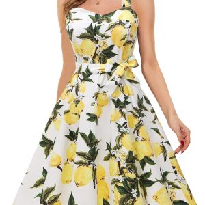 - Printed, woven fit and flare dress