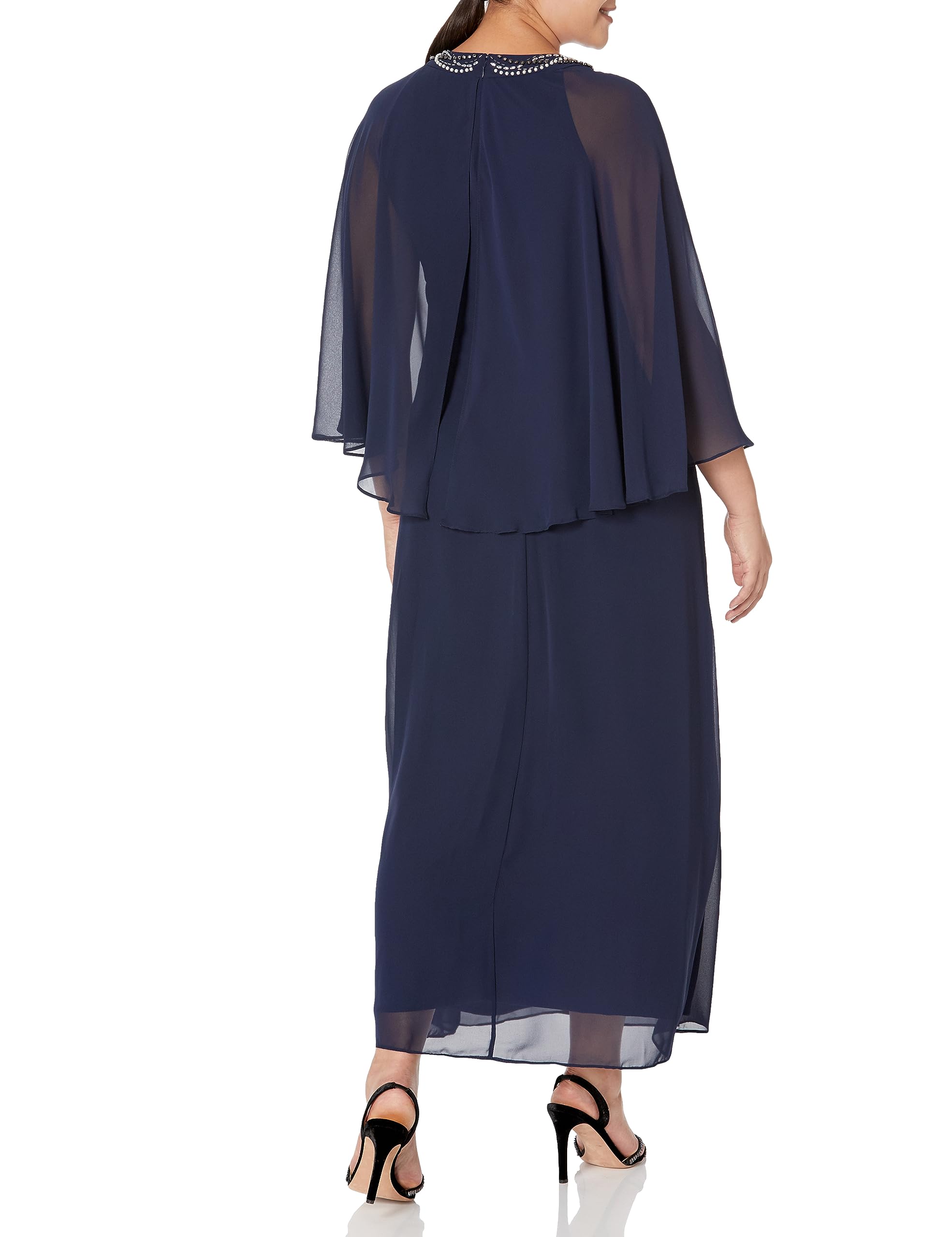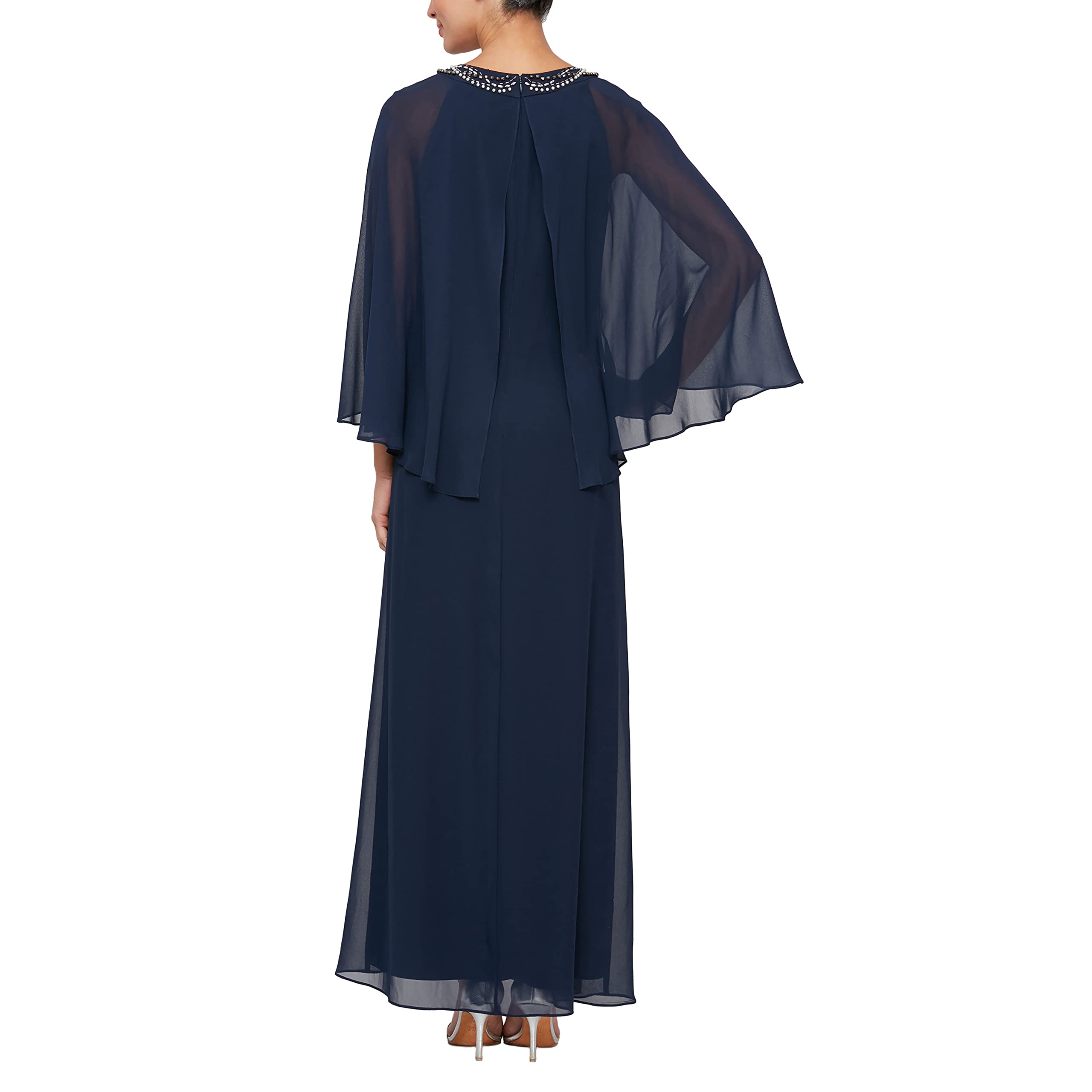 • Chic Attached Cape: The dress includes illusion capelet sleeves that drape elegantly over the shoulders, adding an extra layer of style and sophistication.
