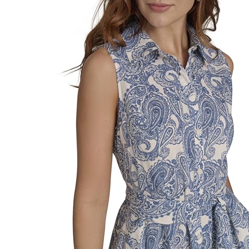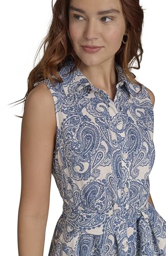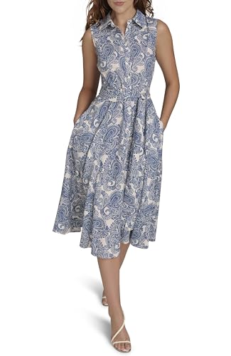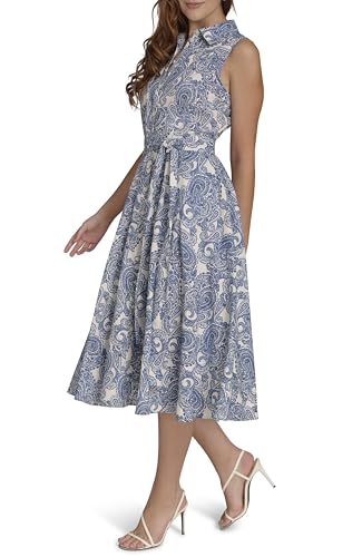 Women’s Sleeveless Collared Button Front Tie Waist Midi Shirt Dress